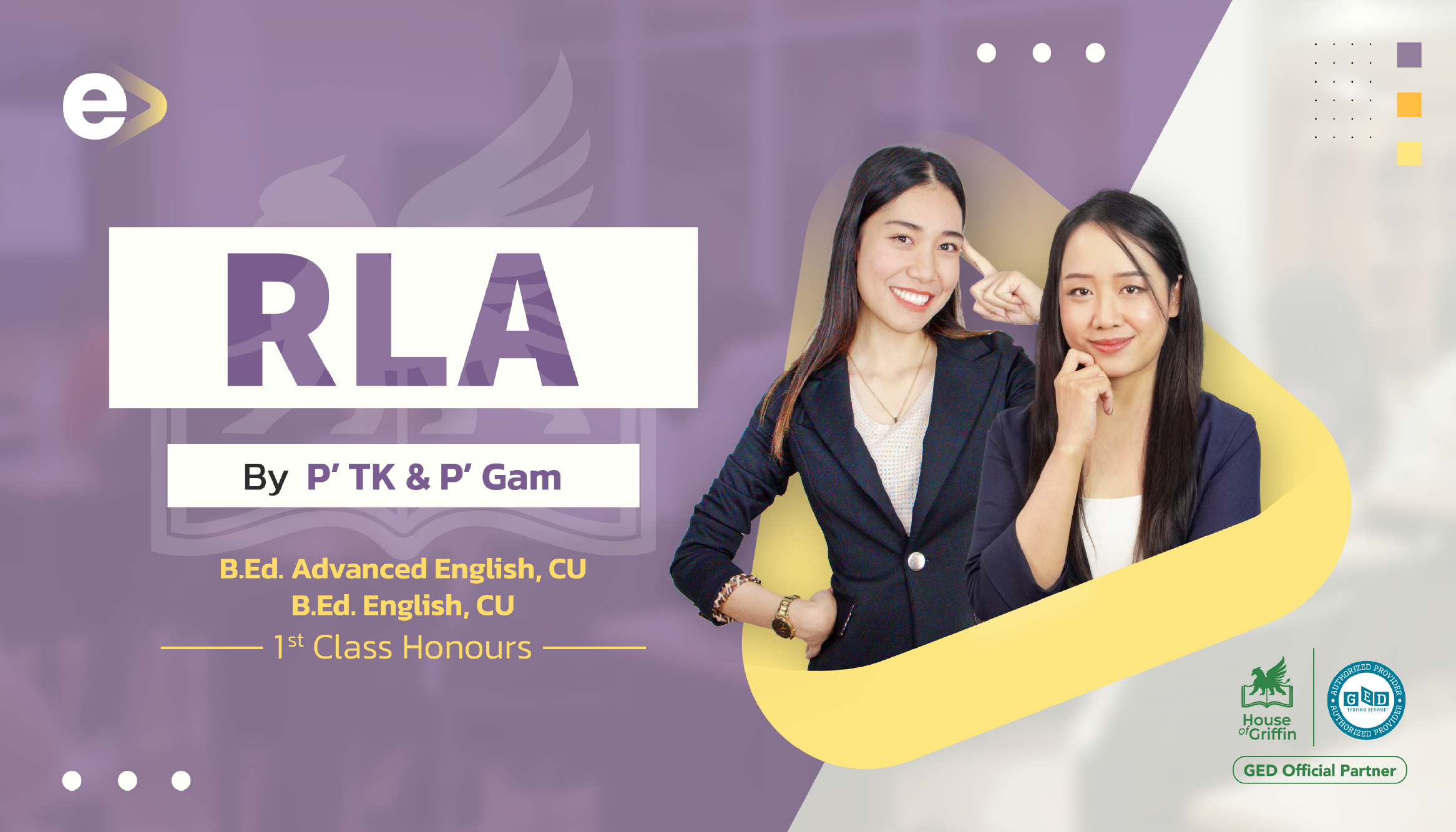 GED RLA คือ ข้อสอบ GED รายวิชาภาษาอังกฤษ ซึ่ง RLA นั้นจะย่อมาจาก Reasoning Through Language Arts เป็นข้อสอบวัดทักษะการใช้เหตุผลทางภาษาในการสื่อสารผ่านการอ่าน (Reading) และการเขียน (Writing) ภาษาอังกฤษ กำหนดเวลาการสอบ 150 นาที มีคะแนนเต็มทั้งหมด 200 คะแนน โดยจะกำหนดเกณฑ์คะแนนขั้นต่ำอยู่ที่ 145 คะแนนขึ้นไป